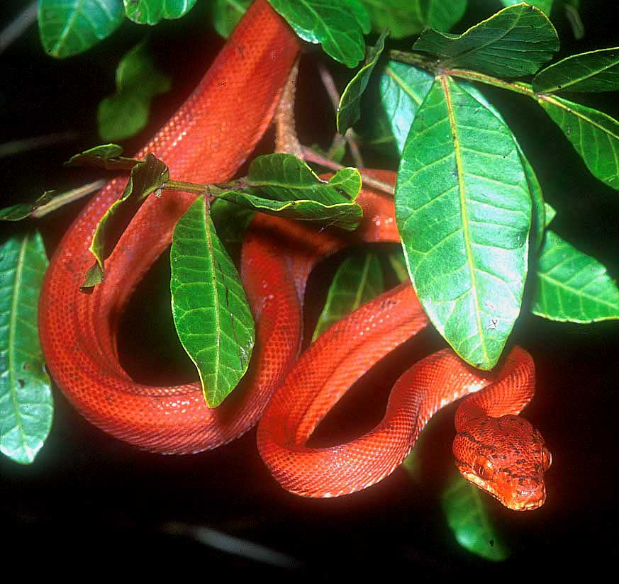 become almost solid red uni-colored snakes, lacking black ventral blotches and